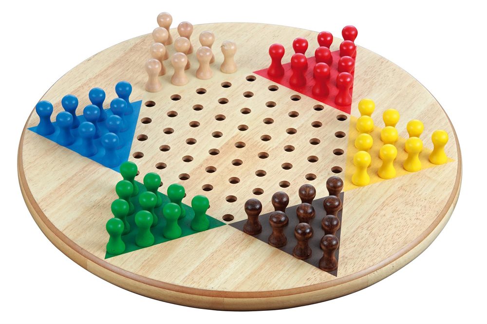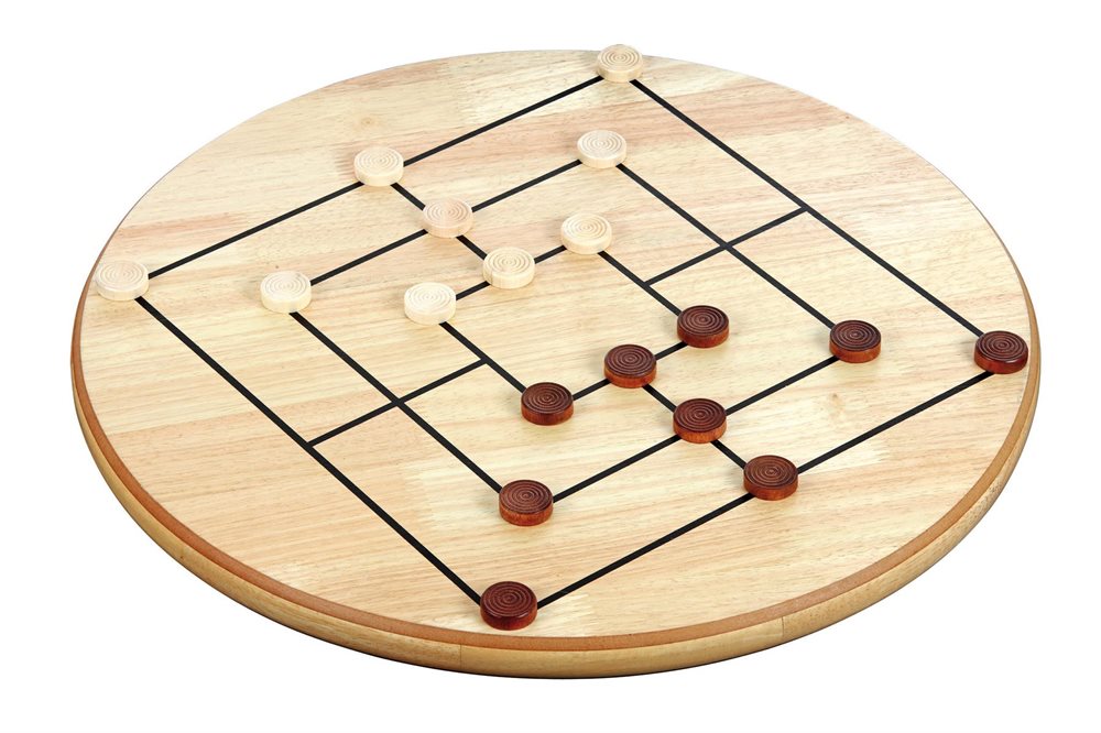 This combination joins the strategy games Chinese Checkers and Nine Men’s Morris.