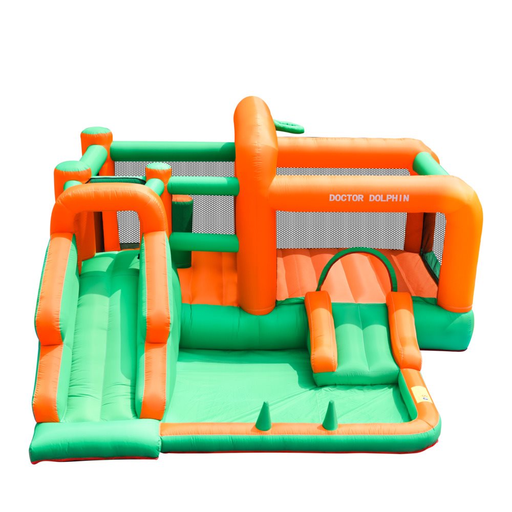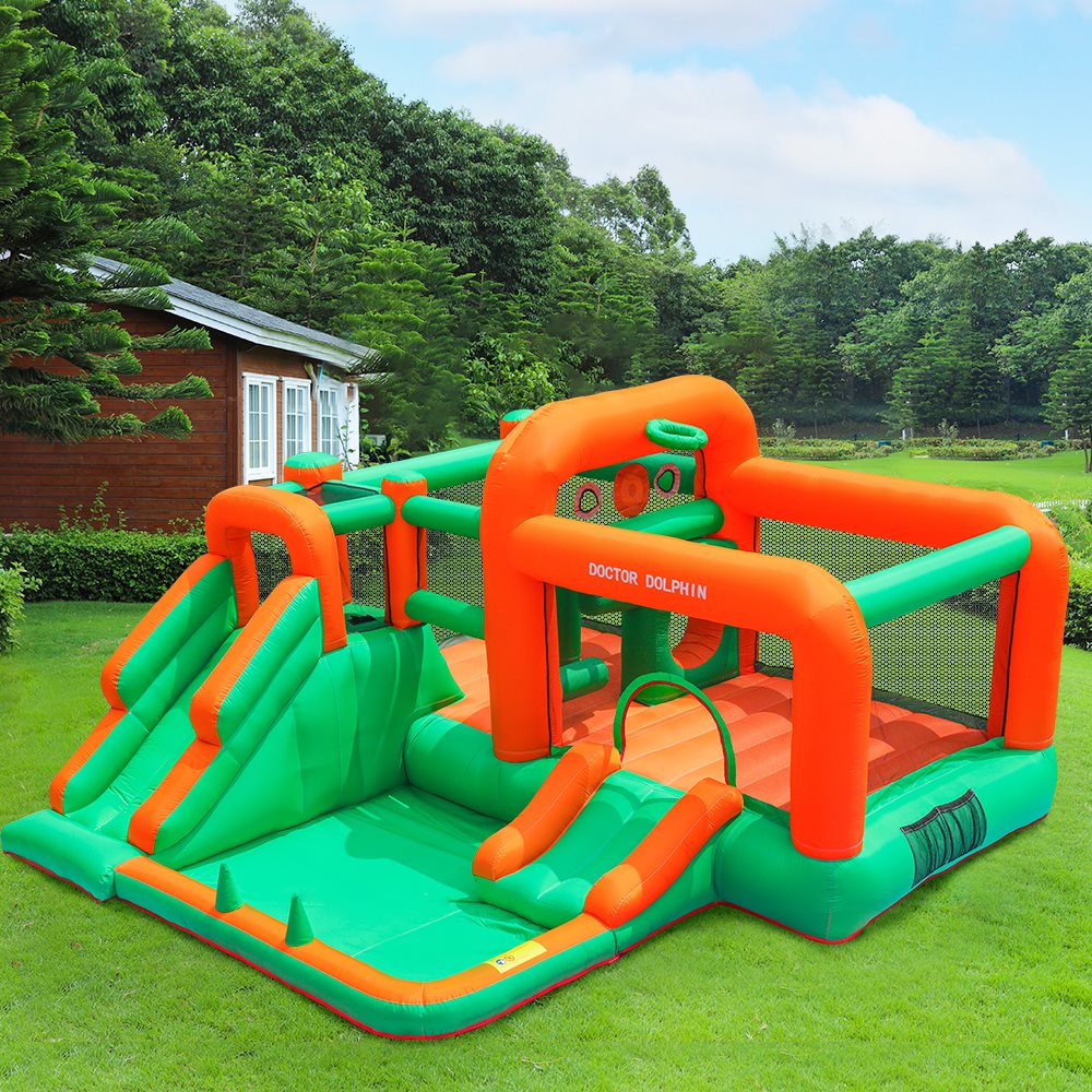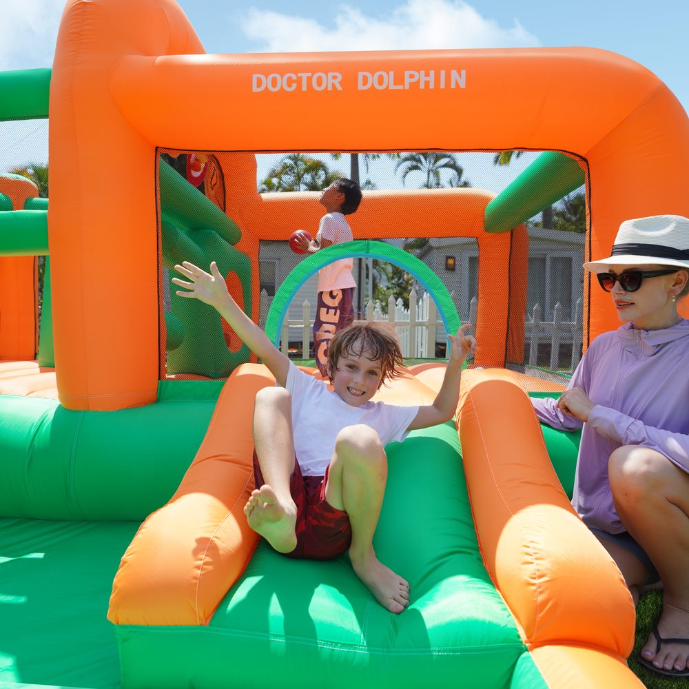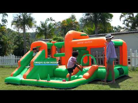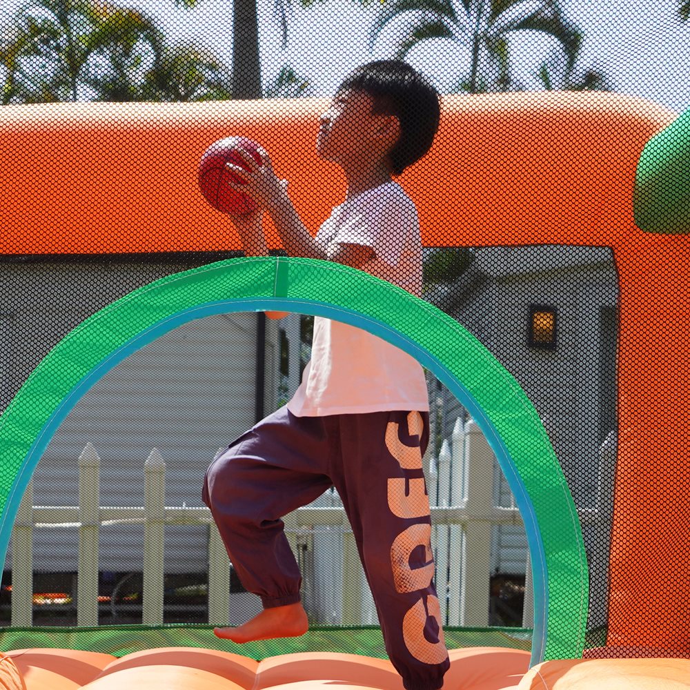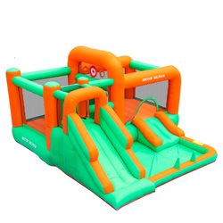 The material is PVC nylon with reinforced stitching. High-quality construction for many, many hours of fun for children. Easy to set up – simply plug in the included blower, and it’s ready to use within 2 minutes.