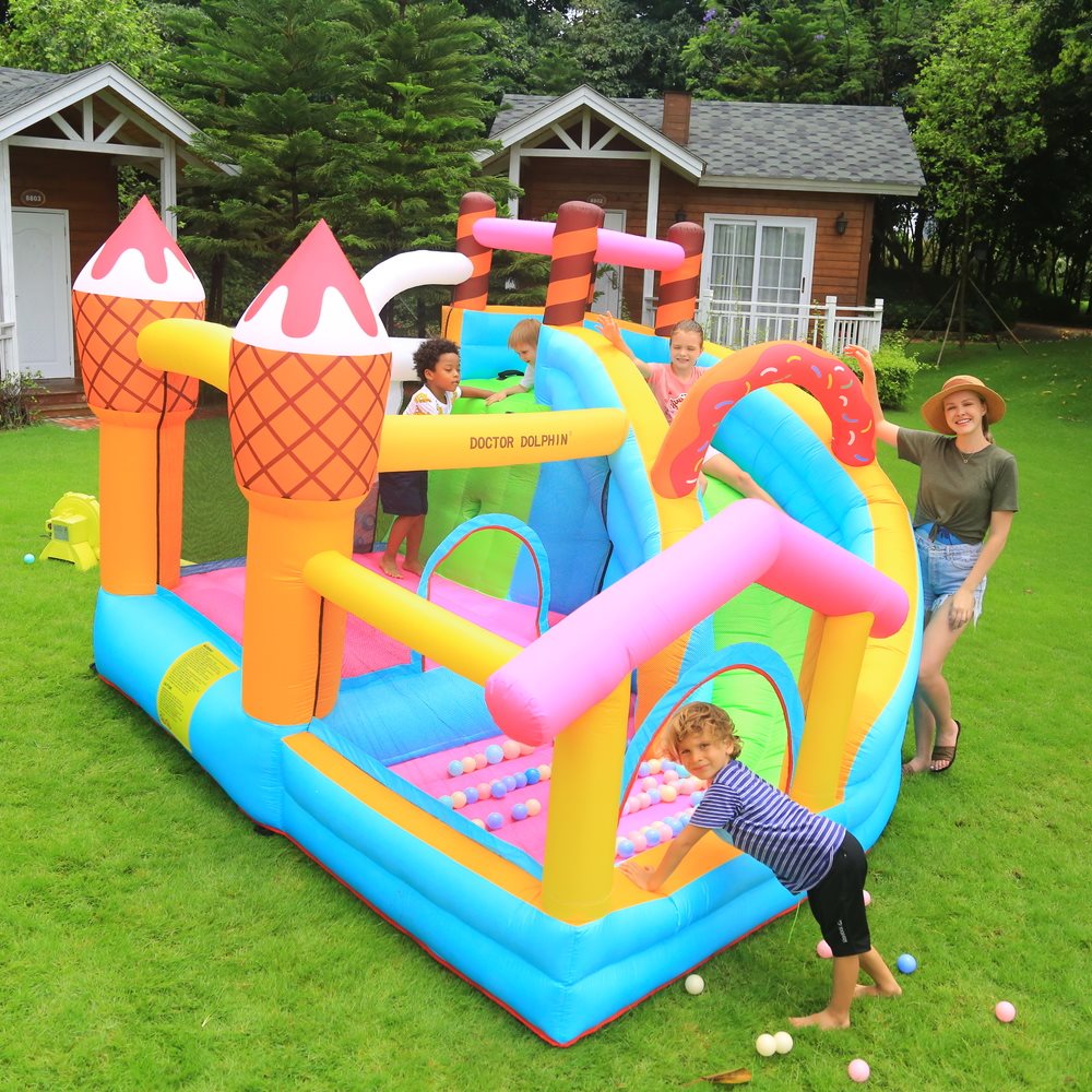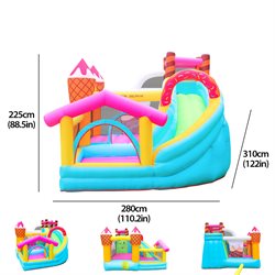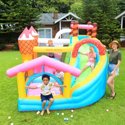 Made from PVC nylon with reinforced stitching. High-quality construction designed for many, many hours of fun for children. Easy to set up – simply plug in the included blower, and within 2 minutes, it’s ready for use.