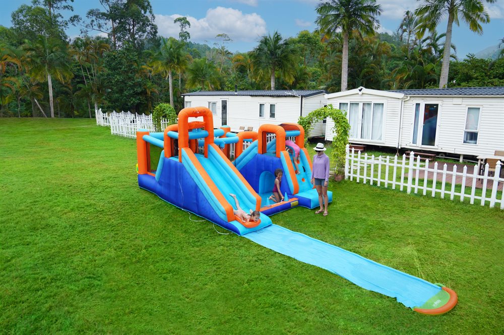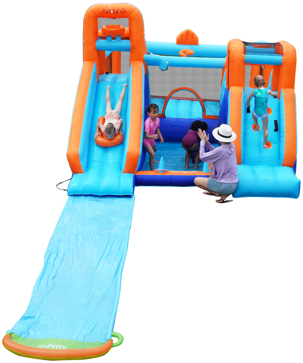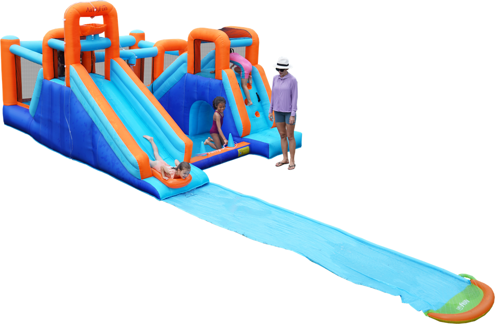 Made from PVC nylon with reinforced stitching. High-quality construction designed for many, many hours of fun for children. Easy to set up – simply plug in the included blower, and within 2 minutes, it’s ready for use.