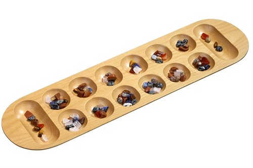 but many tactical possibilities. Winner of the game is the player who has captured most of the stones in his Mancala.
